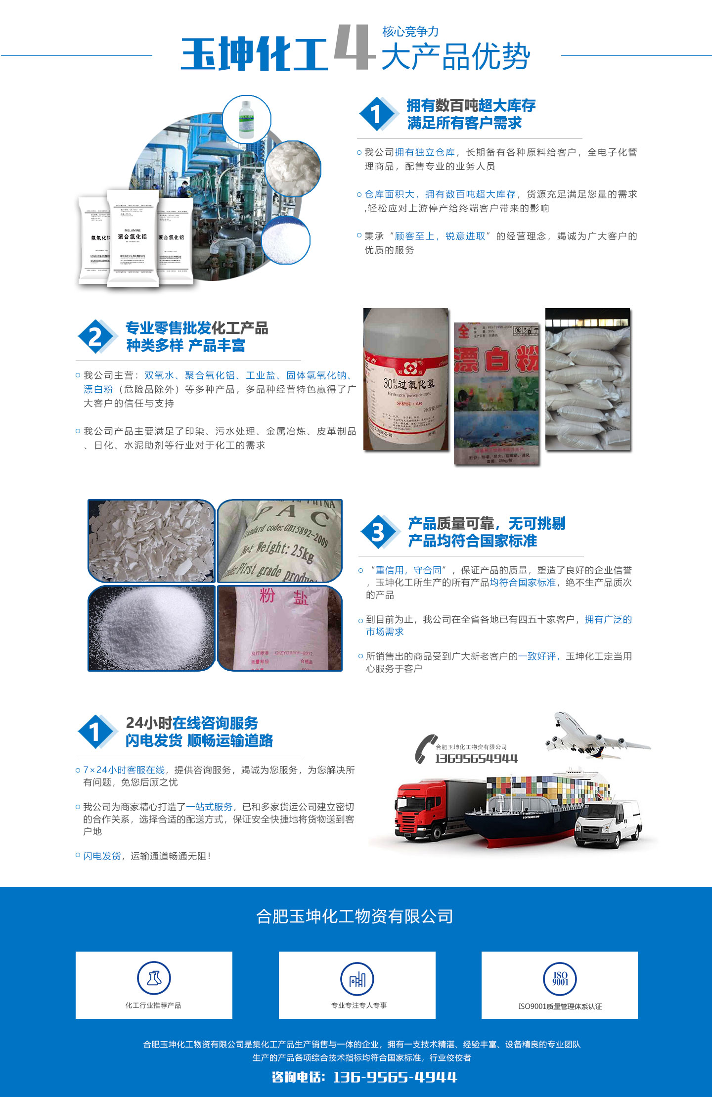 合肥PA直营化工物资有限公司自创办以来,PA直营化工一直专注于化工行业,在该领域具备了明显的技术、生产和服务优势。我们坚持以技术为先导,持续进行产品开发,不断提高技术、生产水平;成立了研发中心,持续引进高素质技术人才,拥有一支认真负责的研发团队。公司一贯遵循“以市场为导向、以质量求生存、以信誉拓市场”的发展思路,始终致力于为客户提供产品和满意的服务。我们将凭借技术人才、精良的设备、可靠的技术、科学的管理、服务,以“质量为先、信誉为重、管理为本、服务为诚”的理念,求真务实、锐意创新的开拓精神,积极围绕公司的发展战略目标,努力把公司建设成技术密集型、外向行、市场型的国内先进的精细化...